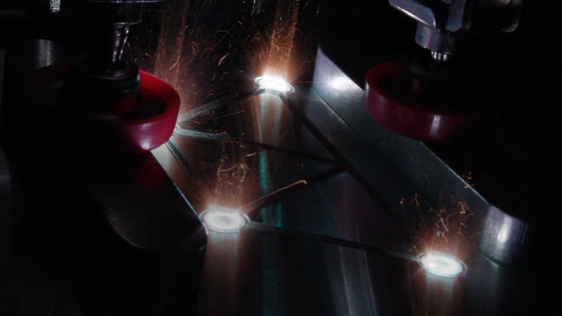 The video shows an exemplary application in which another sheet with higher tensile strength is welded onto a base sheet. Rivet holes are cut in the ring-shaped weld seams. Subsequently, fine structures are only cut into the upper material. The geometry, which is optimized for tensile forces, reinforces the force introduction point directly at the hole and the connection between the holes.